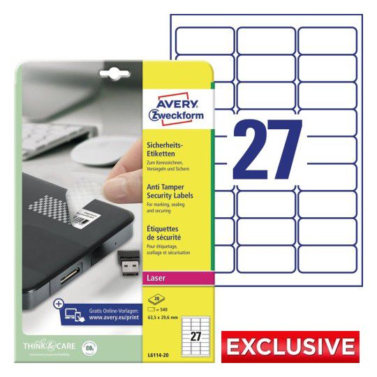 - Термостойкие полиэстерные самоклеящиеся этикетки-пломбы Avery Zweckform
