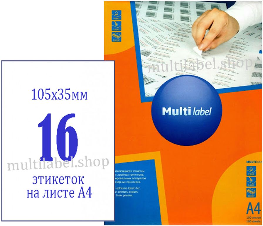 - Размер этикетки - 105х35мм / 16 шт на листе
