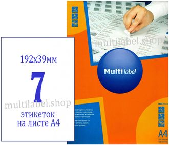 - Размер этикетки - 192х39мм / 7 шт на листе