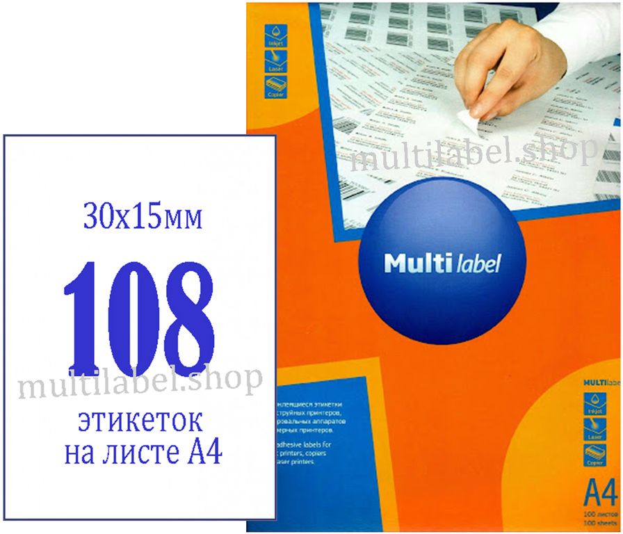- Размер этикетки - 30х15мм / 108 шт на листе