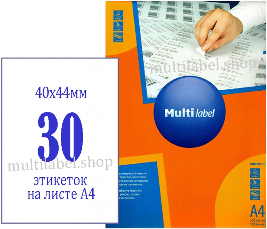 - Размер этикетки - 40х44мм / 30 шт на листе