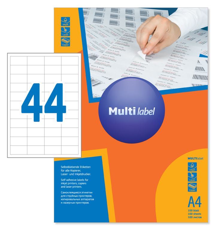 - Размер этикетки - 48.5х25.4мм / 44 шт на листе