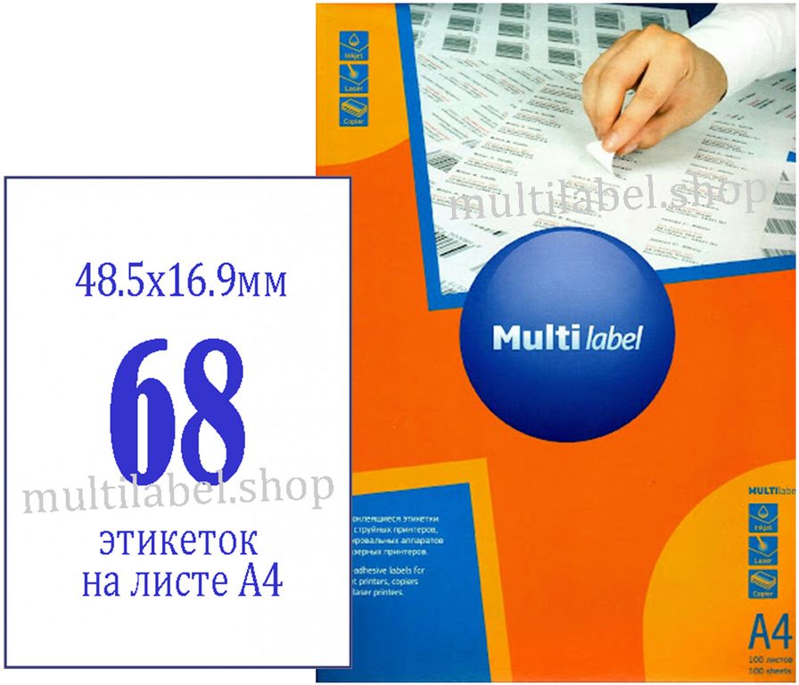 - Размер этикетки - 48.5х16.9мм / 68 шт на листе