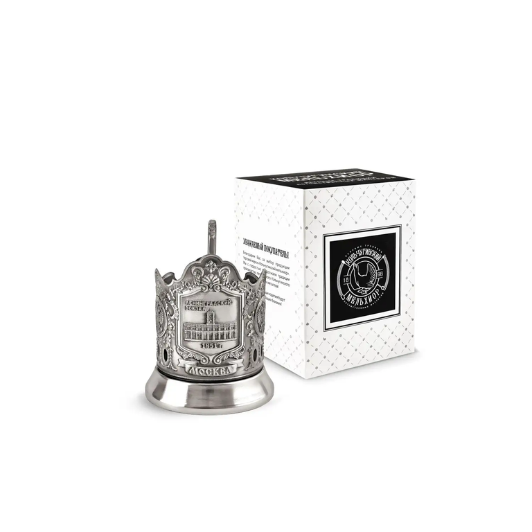 Никелированный подстаканник, с чернением, оригинального дизайна