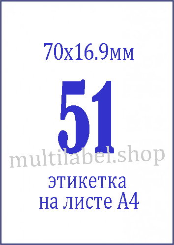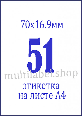 - Размер этикетки - 70x16.9мм / 51 шт на листе